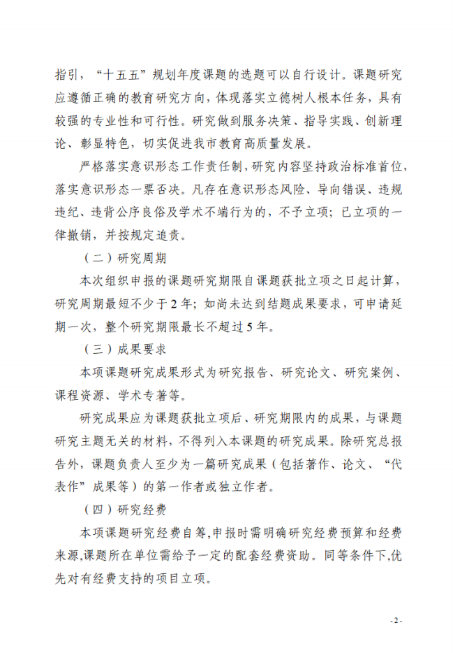 研究周期:最短2年,最长不超过5年(可延期一次)