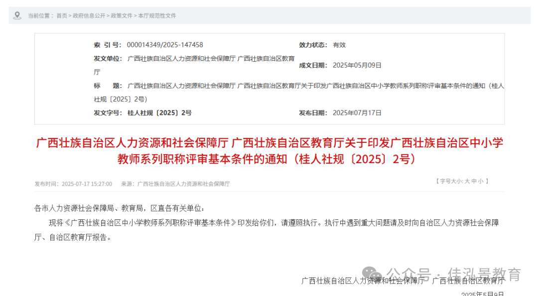 2026年广西中小学教师系列-副高级职称评审条件(桂人社规〔2025〕2号)