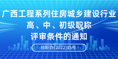 关于印发广西壮族自治区工程系列住房城乡建设行业高、中、初级职称评审条件的通知(桂职办〔2022〕35号) 来源:广西壮族自治区职称改