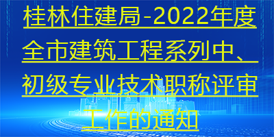 根据河池职称改革工作领导小组办公室《关于做好2022年度全市职称评审工作的通知》(河职办〔2022〕1号)精神,结合工作实际,我局设置工程技术系列河池市中级评委会、工程技术系列河池市初级评委会。现将2022年度全市工程系列中、初级专业技术资格评审工作有关事项通知如下: