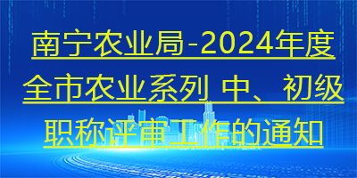 根据自治区农业系列职称改革工作领导小组办公室《关于做好2024年度全区农业行业职称评审工作的通知》(桂农业职改〔2024〕1号)、《广西壮族自治区人力资源和社会保障厅关于印发广西壮族自治区职称评审管理服务暂行办法的通知》(桂人社规〔2021〕11号)及百色市人力资源和社会保障局《关于做好2024年度全市职称评审工作的通知》精神,现就开展2024年度农业系列职称评审工作有关事项通知如下: