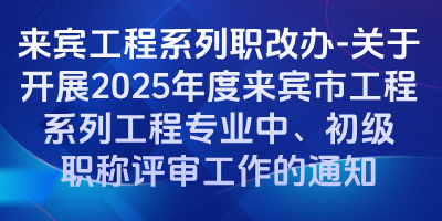 根据《广西壮族自治区生态环境厅职称改革领导小组办公室关于开展2025年度工程系列生态环境行业职称评审工作的通知》(桂环职办〔2025〕4号)和《来宾市人力资源和社会保障局关于做好2025年度全市职称评审工作的通知》(来人社函〔2025〕87号)精神,结合我市工程系列生态环境行业职称评审工作实际,现就做好2025年度全市工程系列生态环境行业中、初级职称评审工作有关事项通知如下: