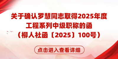 关于确认罗慧同志取得2025年度工程系列中级职称的函(柳人社函〔2025〕100号)