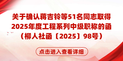 关于确认蒋吉铃等51名同志取得2025年度工程系列中级职称的函(柳人社函〔2025〕98号)