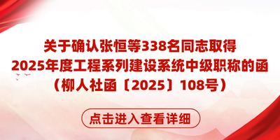 关于确认张恒等338名同志取得2025年度工程系列建设系统中级职称的函(柳人社函〔2025〕108号)